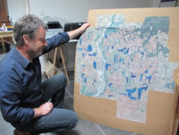 Denis Alary of Domaine Alary with a map used during Cairanne's promotion to Cru